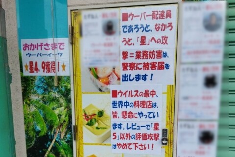 業務妨害だ」 ウーバー配達員の顔写真さらしあげた飲食店「星5以外の